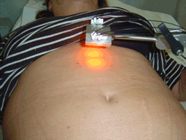 Zusätzlich bestrahle ich mit dem Laserblock das Gebiet über dem Magen.